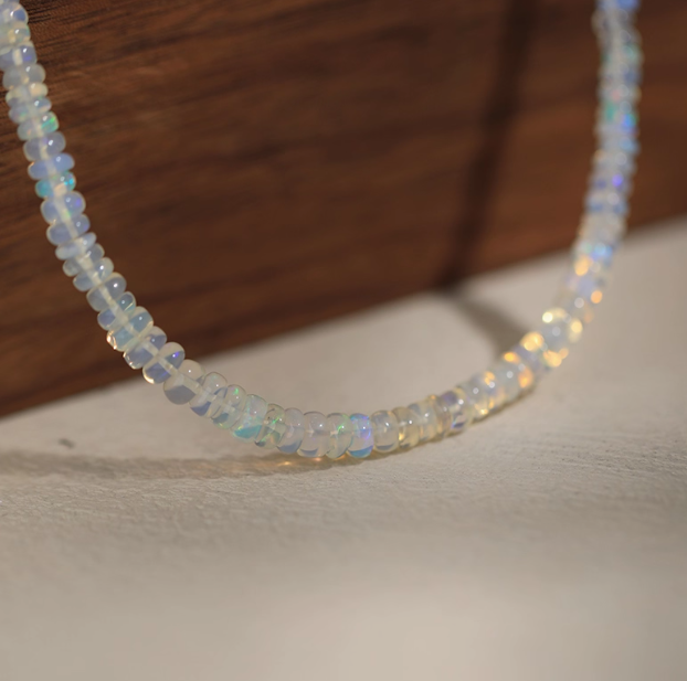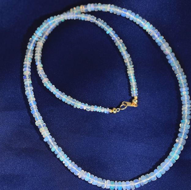 18K Gold Natural Opal Necklace Natural African High Fire Opal Beads Gold Opal Elegant Tower Chain