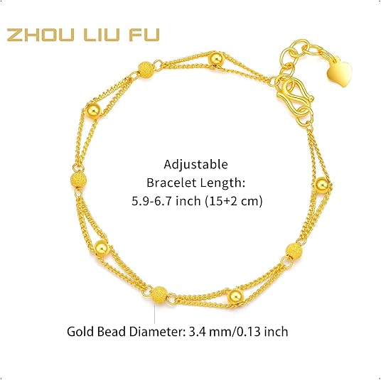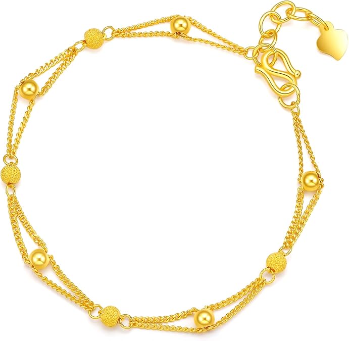 999 24K Pure Gold Bracelet for Women Real Gold Simple Jewelry Gold Beads Gold Chain Bracelet for Men…