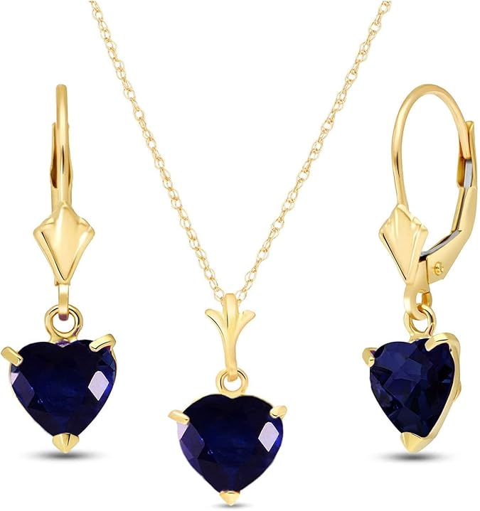 Gold GG 14K Pure White Rose and Yellow Gold Jewelry Set – Necklace and Earrings with Heart-Shaped Na…